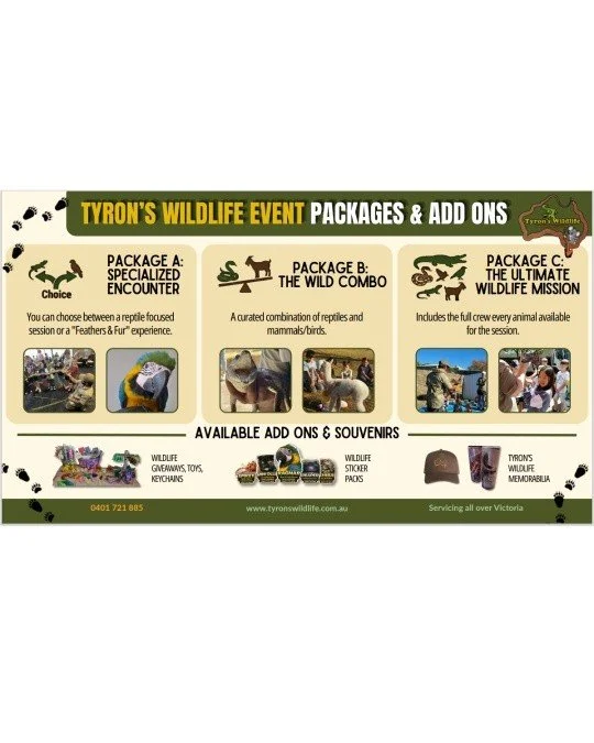 This 60‑minute interactive showcase includes everything from our Starter Package, plus even more wild favourites and extra time for hands‑on encounters. It’s educational, energetic, and tailored for curious minds and larger groups.